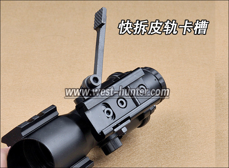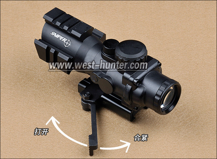 商品名称 SNIPER 4X32斜口短瞄带三面导轨快拆版 放大倍率 4倍 重量 430g 长度 15cm 物镜口径 32mm 调节方式 硬币式调节轮 分化材质 玻璃板 镀膜方式 宽带绿膜 抗震与否 是 一体管与否 是 视度可调与否 是 充氮与否/防水防雾 是