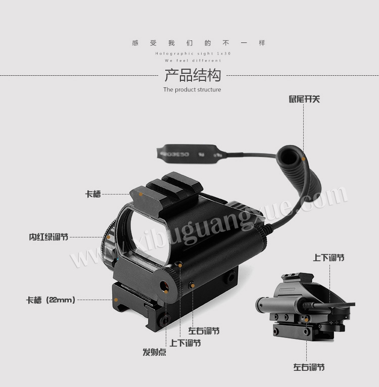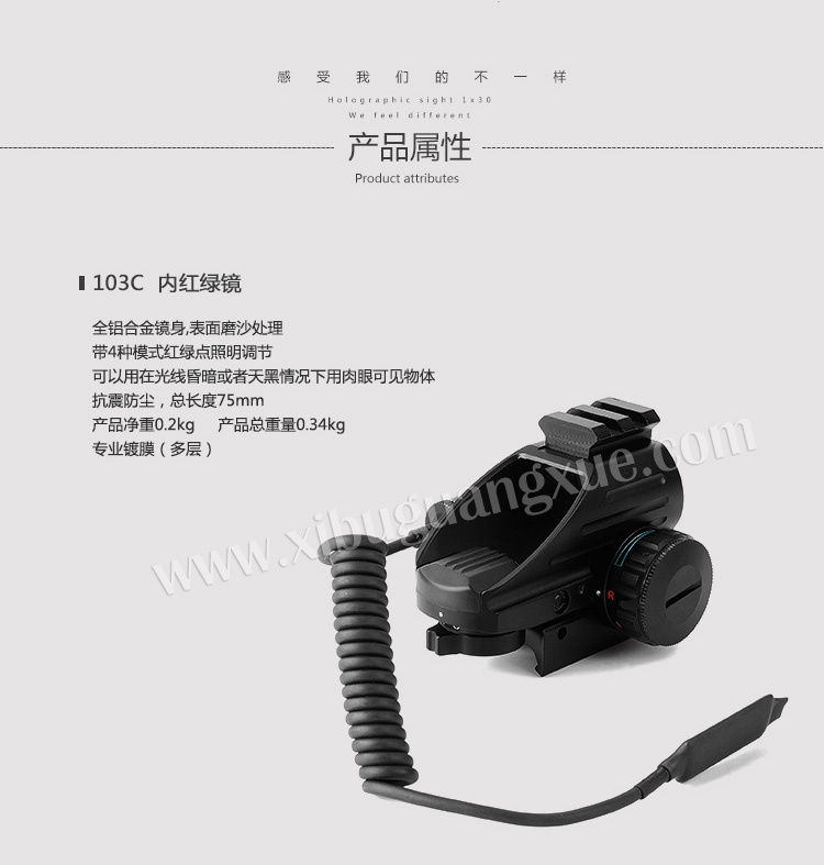 商品名称全息高清四变点红绿双光瞄准镜 带红外线