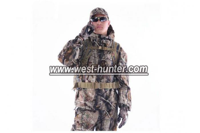 狩猎软壳套装采用三层复合材料,内层抓绒保暖 中层防水透气,外层防风、静音面料。包括2个迷彩花色:OAK迷彩和AP迷彩