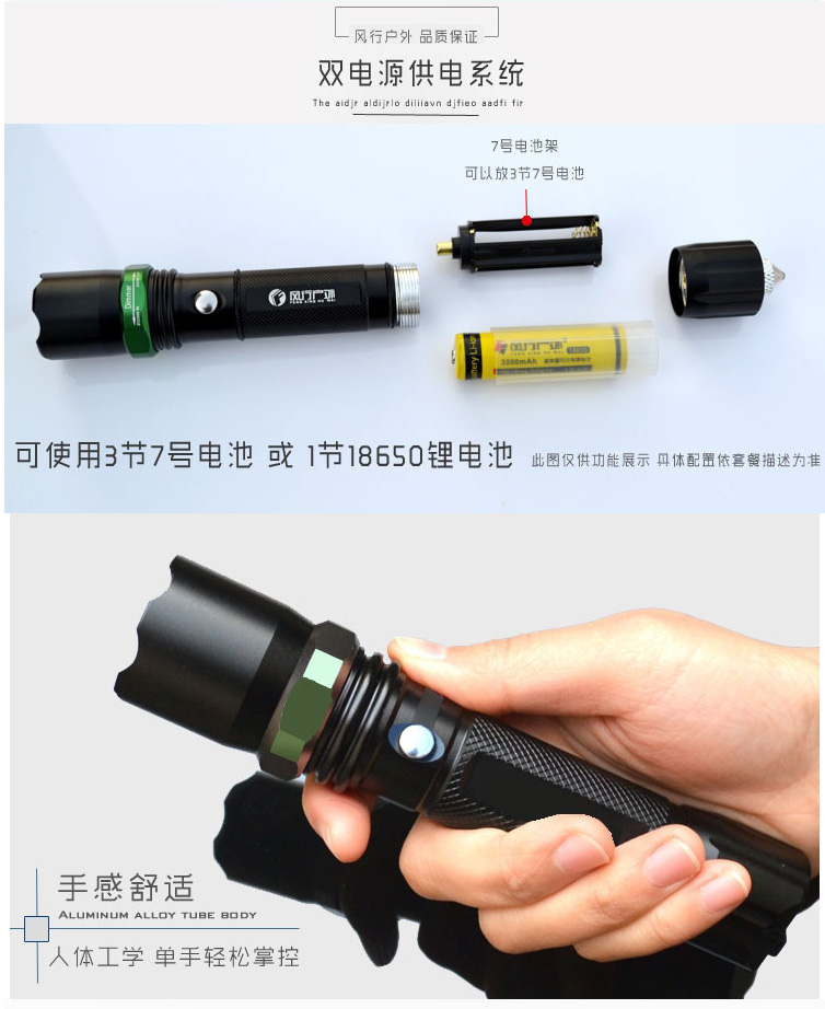 商品名称强光手电LEDQ5 金属按钮正品神火无极旋转变焦