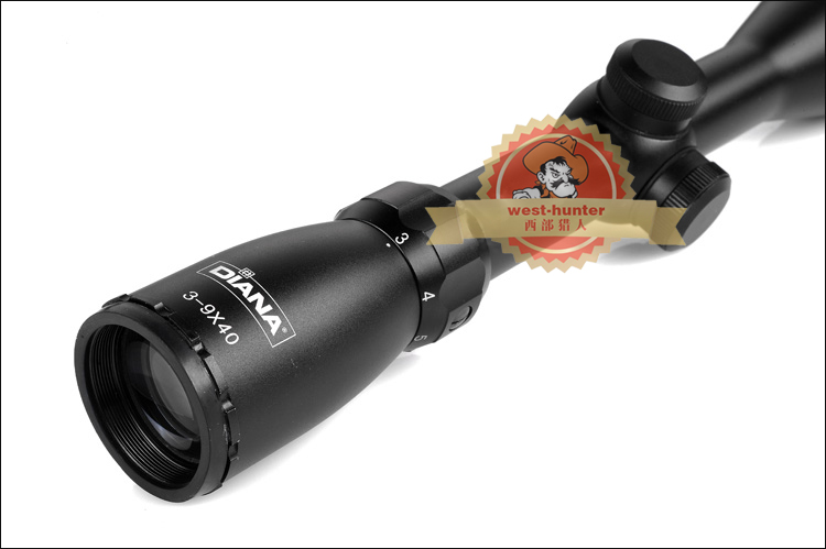 商品名称 DIANA 3-9X40AO 一体管玻璃板双十字分划光学瞄准镜 [放大倍率] 3-9倍 [重量] 490g [长度] 35cm [管径] 25.4 [物镜口径] 40mm [调节方式] 手动调节无锁定 [调节量] 1喀哒100码外1/4英寸 [调焦方式] 物镜可调 [调焦最近] 最低10码无视差 [分化线] 十字密位点 [分化材质] 玻璃分化 [镀膜方式] 宽带蓝膜 [抗震与否] 是 [一体管与否] 是 [视度可调与否] 否 [充氮与否/防水防雾] 是