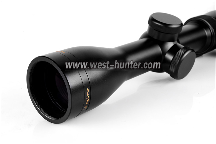 [放大倍率] 1.5-6倍 [长度] 29cm [管径] 30mm [物镜口径] 42mm [调节方式] 带盖式销音手调轮 [调节量] 100码外1咔哒1/4英寸 [出瞳距离] 10CM左右 [分化线] 密位点 [分化材质] 玻璃板 [镀膜方式] 宽带紫膜 [抗震与否] 是 [一体管与否] 是 [视度可调与否] 是 [充氮与否/防水防雾] 是