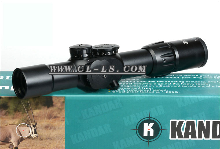 商品名称 康达KANDAR 2-12X32E-SF 35mm管径 分划板前置 [放大倍率] 2-12倍 [重量] 600g [长度] 28cm [装消光筒长度] 照明方式:红绿灯各5档 调焦最远:500Y=455M [管径] 35mm [目镜口径] 34mm [物镜口径] 32mm [调节方式] 大阻力超低手调轮【不带锁定】 [调节量] 100码外1咔哒1/4英寸 [调焦方式] 侧调焦 [调焦最近] 10Y=9.1M [出瞳距离] 7CM [分化线] 密位点 [分化材质] 玻璃板 [镀膜方式] 宽带绿膜 [抗震与否] 是 [一体管与否] 是 [视度可调与否] 是 [充氮与否/防水防雾] 是