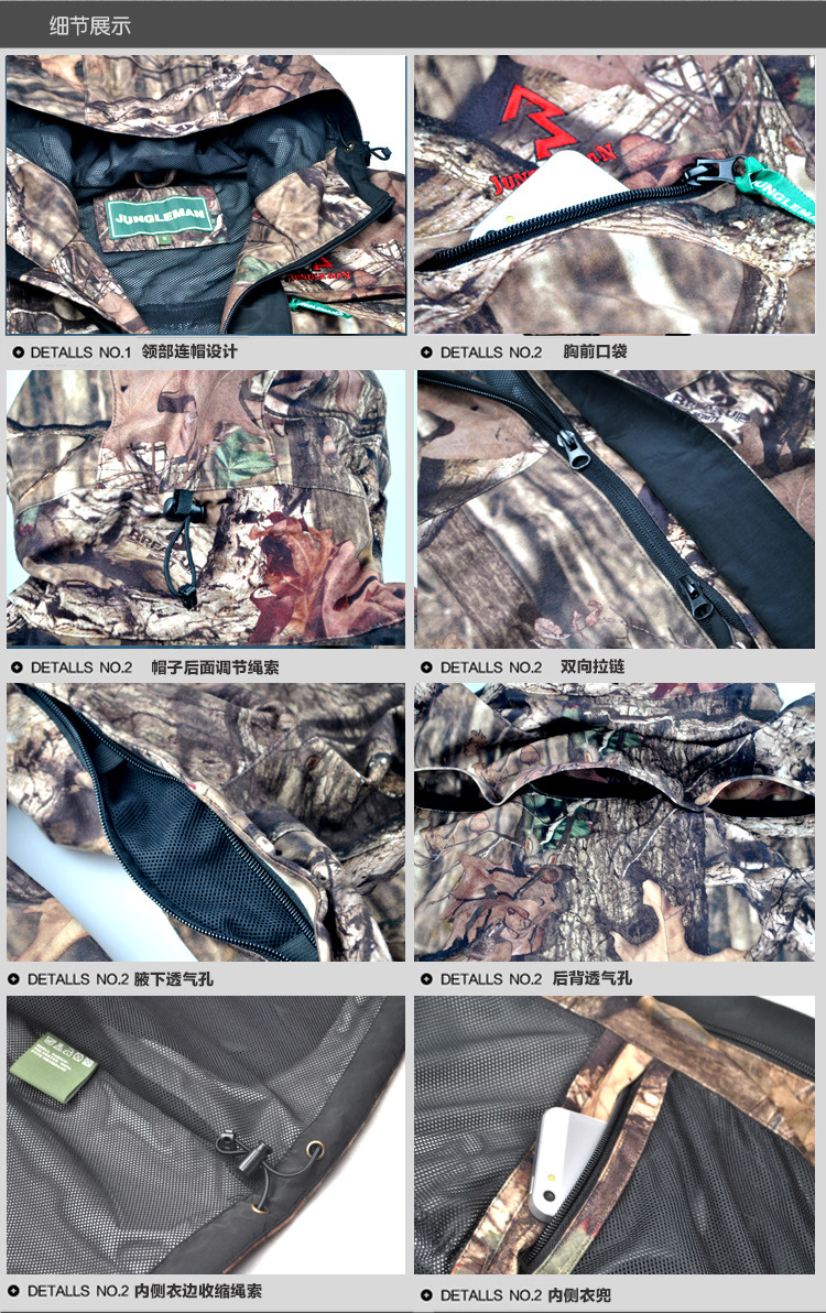 商品名称仿生迷彩上衣/网眼薄款伪装狩猎服/防水防刮冲锋衣