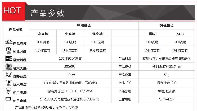 商品名称正品神火S5强光手电筒 LED迷你充电防水